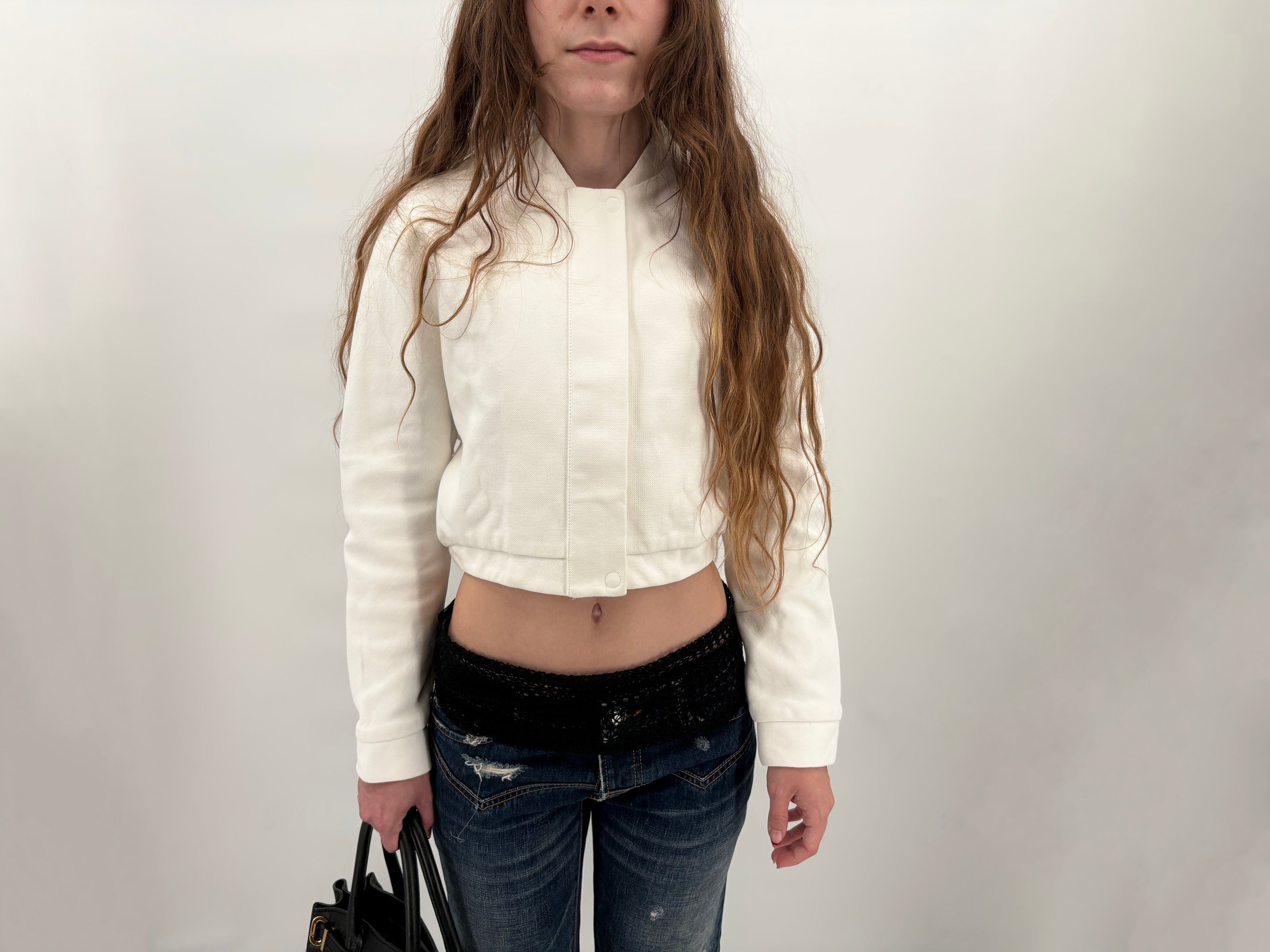 cropped boxy bomber jacket in a heavy weight cotton with button and zip closure, alexander wang era